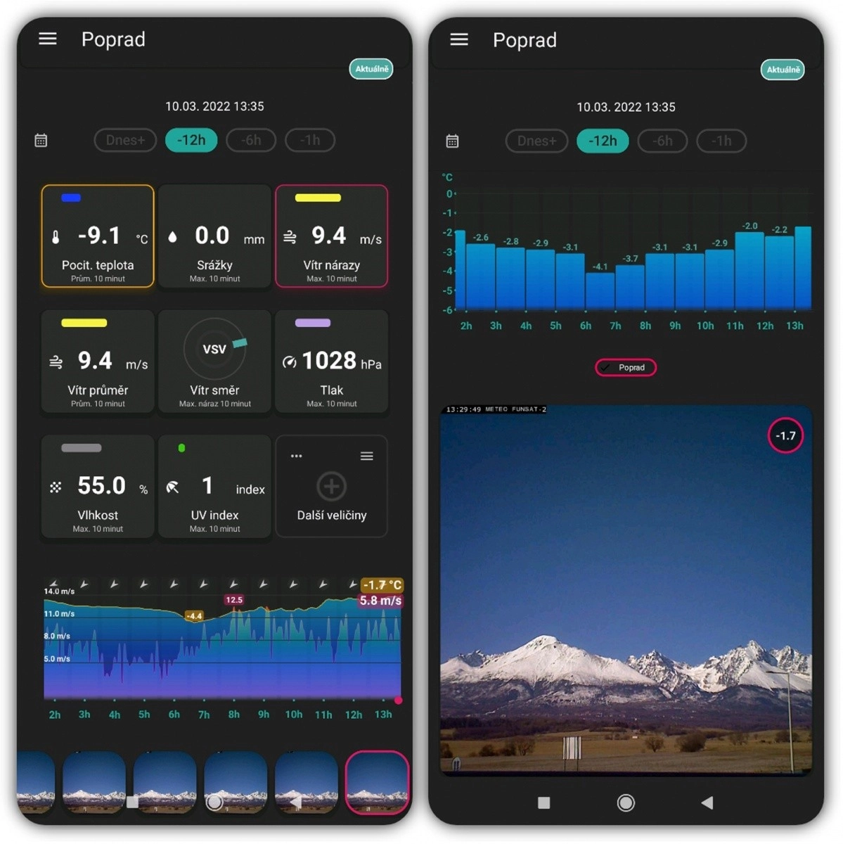 - Historique et graphiques de température, d’humidité, de pression et de précipitations
