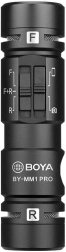 Le microphone Boya BY-MM1 Pro est conçu pour ceux qui doivent enregistrer un son de qualité dans divers environnements. Grâce à sa directivité supercardioïde et à sa capsule double, vous pouvez capter le son à l’avant comme à l’arrière du microphone, idéal pour le vlogging et les interviews.
