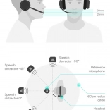 La technologie EPOS AI associée à des microphones numériques adaptatifs utilise la formation de faisceau pour identifier et éliminer efficacement les sources de bruit, garantissant une clarté vocale impeccable.