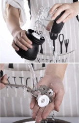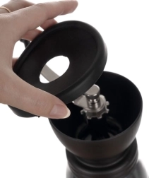 L’équipement pratique comprend 2 récipients en verre de 120 g avec couvercles pour préserver la fraîcheur, une manivelle métallique pour un broyage fluide et une base en silicone antidérapante pour une excellente stabilité sur le plan de travail. Les éléments en verre passent au lave-vaisselle, le reste se nettoie facilement à la main.