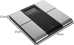 Des capteurs haute précision et des électrodes de contact assurent un calcul fiable de l’IMC ainsi que des pourcentages de graisse, d’eau et de masse musculaire. Les résultats sont automatiquement enregistrés dans le profil de l’utilisateur après la mesure.