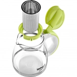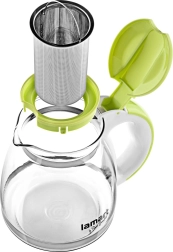 - La carafe contient un infuseur en acier inoxydable, adapté aux thés en vrac, morceaux de fruits ou herbes.