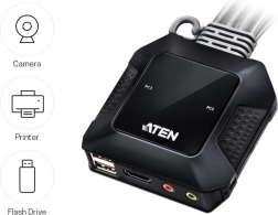 Commutateur KVM permettant de basculer facilement entre deux ordinateurs via une seule connexion USB et HDMI. Profitez d’une qualité d’image 4K éclatante et rationalisez votre espace de travail avec moins de câbles.