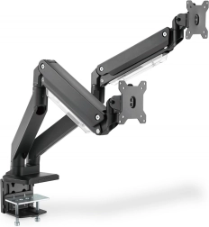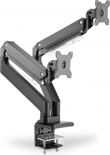 Installation simple et rapide grâce à la fixation par pince. Comprend aussi une tige de passage pour un montage alternatif sur le bureau.