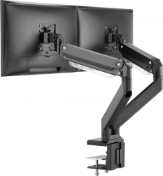 Le support permet d'incliner le moniteur de -45°/+45°, une rotation horizontale jusqu'à -180°/+180° et une rotation du panneau avant de -90°/+90°. Grâce au vérin à gaz, l'ajustement du moniteur à la position souhaitée est simple et fluide.