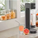 Préparez facilement votre eau pétillante maison en trois étapes : remplir, tourner et appuyer. Comme aucun alimentation électrique n’est nécessaire, vous pouvez profiter de votre eau pétillante préférée à tout moment. Une valve de sécurité intégrée garantit une préparation sûre des boissons en libérant automatiquement la pression à l’intérieur de la bouteille. Le matériau sans bisphénol A protège votre santé.