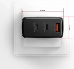 - 3 ports : 2× USB‑C (PD jusqu’à 100 W) + 1× USB‑A (QC jusqu’à 30 W)