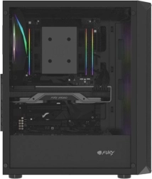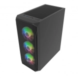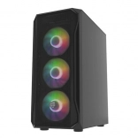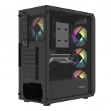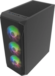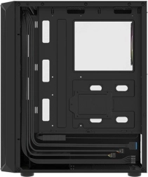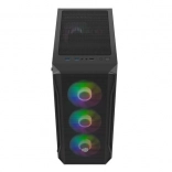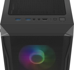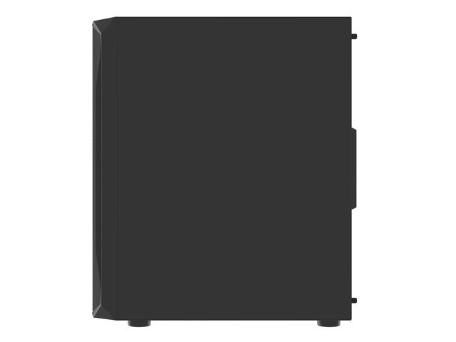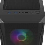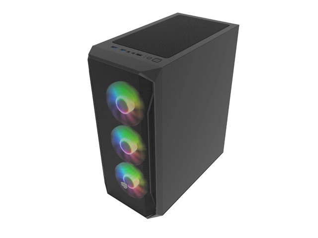 Le panneau E/S supérieur réunit l’essentiel : 2× USB 3.0, 1× USB 2.0, HD Audio 3,5 mm pour casque et micro, boutons Power/Reset et voyants LED. Le verre trempé sur le panneau latéral gauche met en valeur vos composants et effets RGB, tandis que les filtres à poussière denses maintiennent l’intérieur propre durablement.