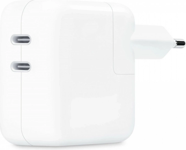 Chargeur compact offrant une puissance de 35 W avec deux ports USB‑C, permettant de recharger deux appareils simultanément à la maison, au bureau ou en déplacement. Idéal pour le MACBOOK AIR, et entièrement compatible avec IPHONE, IPAD, APPLE WATCH et AIRPODS. Recharge pratique et rapide dans un adaptateur élégant.