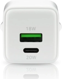 Le chargeur assure une charge rapide via des ports doubles USB-A et USB-C.