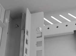 L’armoire est fabriquée en acier de haute qualité, garantissant stabilité et longue durée de vie. Deux rails de montage arrière supplémentaires augmentent la sécurité et facilitent l’installation de divers équipements.