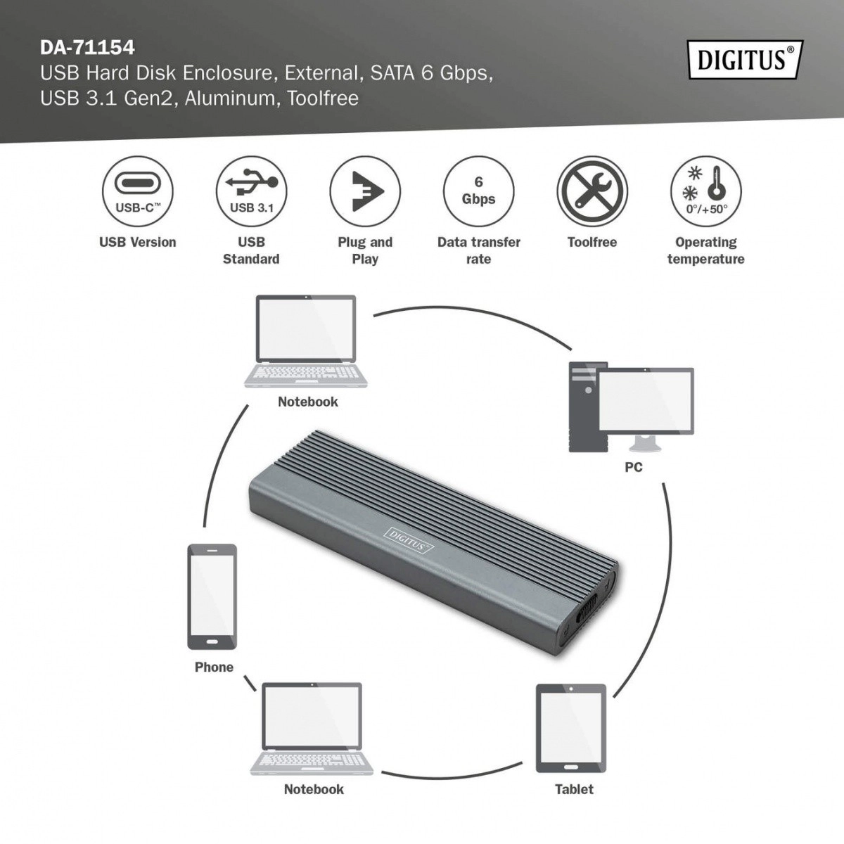 Boîtier en aluminium pour SSD M.2 SATA avec USB‑C 3.1 Gen 2, sans outil