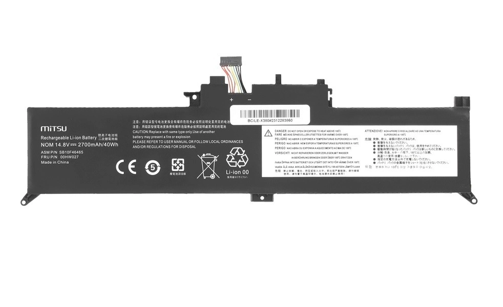 La batterie MITSU représente une combinaison parfaite de haute qualité, de sécurité et de responsabilité environnementale. Avec une capacité de 2700 mAh (40 Wh) et une tension de 14,8 V, elle constitue la solution idéale pour votre ordinateur portable Lenovo ThinkPad Yoga.