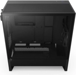 H5 Flow est un boîtier mid-tower compact qui améliore considérablement le refroidissement du GPU et le flux d'air grâce à des panneaux perforés et à un design en maille. Il est équipé de deux ventilateurs Quiet Airflow de 120mm, offrant un refroidissement silencieux et efficace dès l'installation.