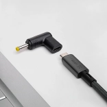 Branchez simplement l’adaptateur au chargeur USB‑C et alimentez un ordinateur portable compatible, par exemple certains modèles LENOVO avec connecteur 4,0 × 1,7 mm. Avant utilisation, assurez‑vous que votre source d’alimentation dispose d’une puissance suffisante pour l’appareil concerné – l’adaptateur n’augmente pas la puissance.