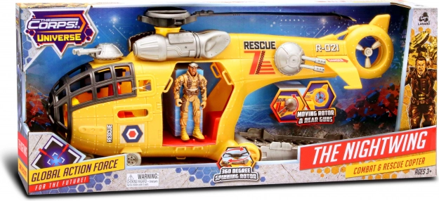 Préparez-vous pour l'action avec le grand hélicoptère The Corps The Nightwing d'une longueur de 50 cm, accompagné d'une figurine de 10 cm articulée. Un excellent choix pour un jeu créatif et aventureux à la maison comme en déplacement.
