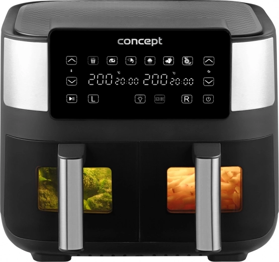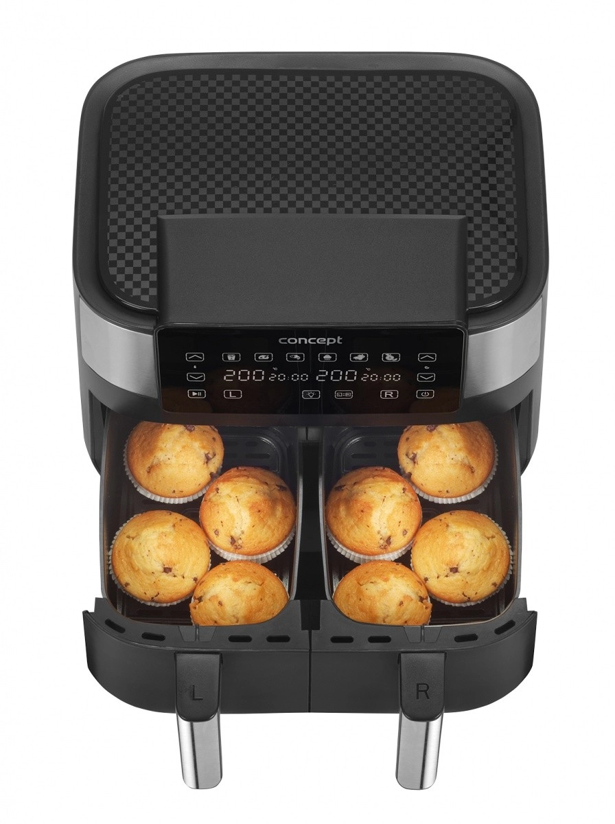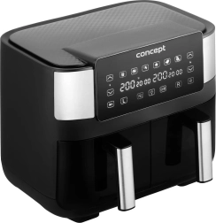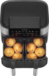 La friteuse à air chaud à double tiroir permet une cuisson rapide, croustillante et plus saine grâce à la circulation d’air chaud. Avec une quantité minimale d’huile, vous obtenez d’excellents résultats sans odeurs ni désordre liés à la friture. Grâce aux deux paniers de 4 litres, vous préparez deux plats différents en même temps sans mélange des saveurs.