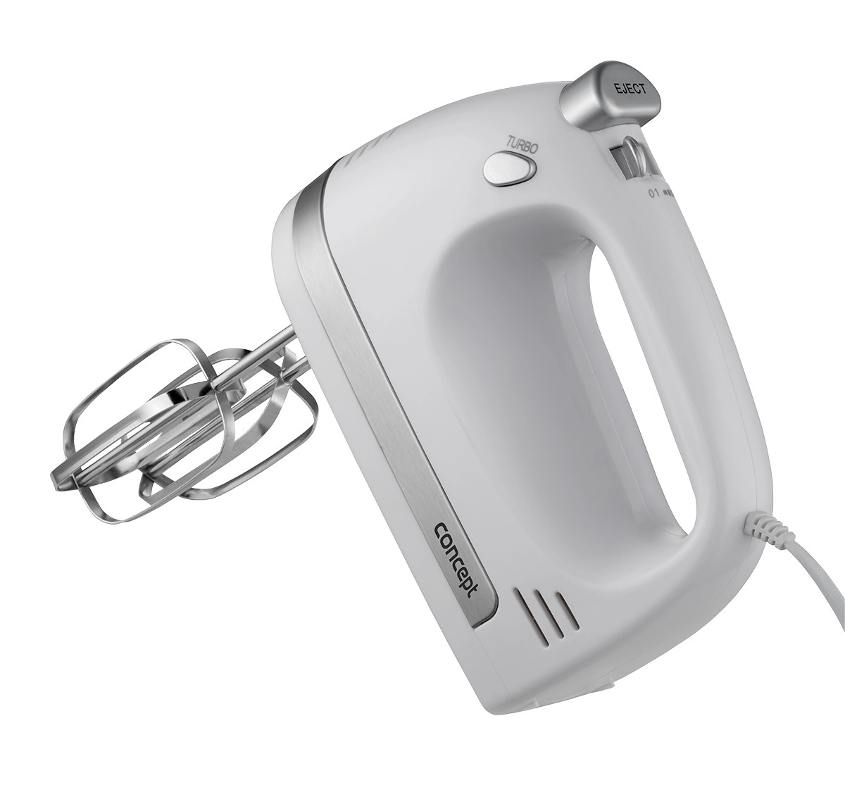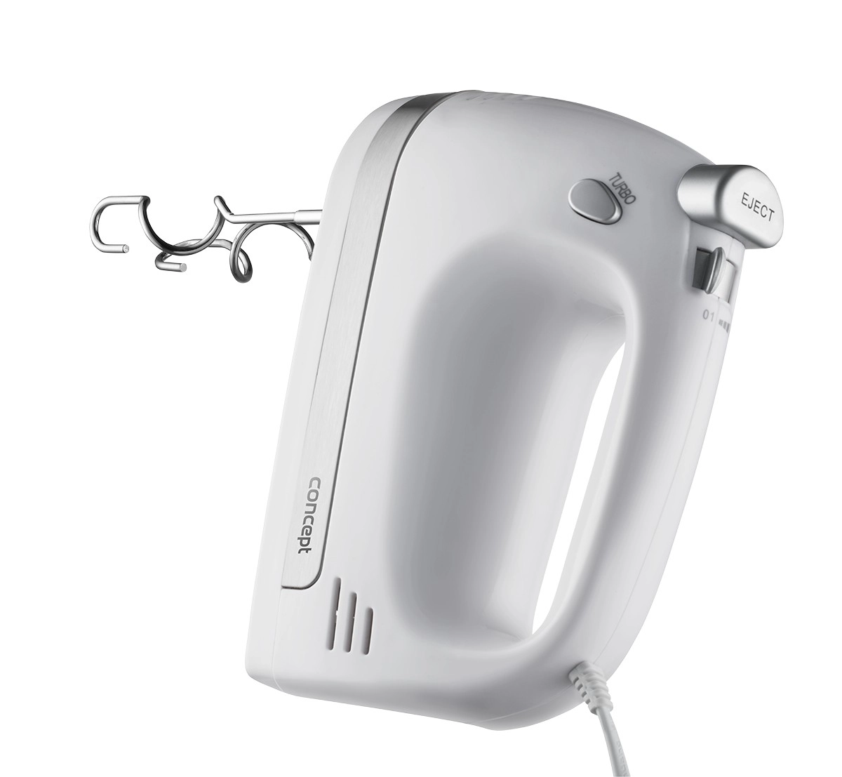 Le coffret comprend des fouets pour crèmes, blancs d’œufs et pâtes génoises, ainsi que des crochets pétrisseurs pour les pâtes levées, à pain ou à pizza. Sa forme ergonomique et son faible poids garantissent une prise en main confortable, même lors d’un usage prolongé. La sécurité et la protection du moteur sont assurées par un dispositif intégré contre la surchauffe.