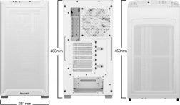 Un support exceptionnel pour les ventilateurs et les radiateurs de watercooling offre flexibilité et refroidissement efficace. Ce boîtier de 231 x 463 x 450 mm pèse 7,2 kg et propose de nombreuses possibilités de personnalisation et un refroidissement optimal.