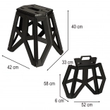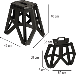 Le tabouret se plie et se déplie en quelques secondes. La poignée intégrée facilite le transport et le rangement dans le coffre ou l’armoire.