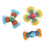 Pratique, ce lot d’anneaux de dentition avec ventouse stable apporte un soulagement lors de la poussée dentaire tout en amusant grâce à l’effet « spinner » rotatif. L’emballage contient 3 pièces d’environ 13–14 cm, qui peuvent être fixées sur une surface lisse pour un usage sûr et hygiénique sans risque de chute au sol.