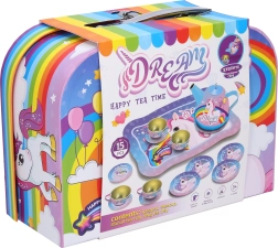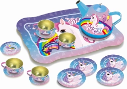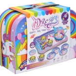 Un set de thé magique dans une adorable petite valise au motif de licornethéière, 4 tasses, 4 sous-tasses et 4 assiettes, le tout en métal résistant. La valise pratique avec poignée mesure 25 × 19 × 10 cm – idéale pour les voyages et le rangement.
