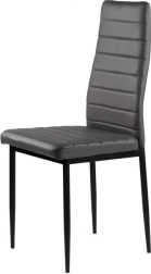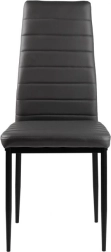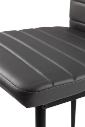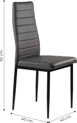 Le lot de quatre chaises complète parfaitement votre salle à manger ou votre séjour grâce à un design moderne avec éléments ergonomiques. Le revêtement gris en similicuir avec surpiqûres horizontales est non seulement esthétique, mais offre également un confort d’assise maximal. Les pieds en métal noir assurent stabilité et durabilité.