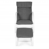 Le fauteuil est accompagné d’un repose-pieds confortable, grâce auquel vous pouvez étendre vos jambes et vous relaxer pleinement. Le tissu spécial et la mousse souple garantissent un confort maximal en position assise.
