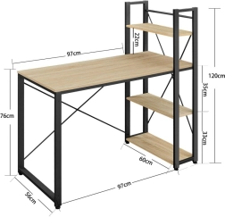 La structure stable permet d’organiser ordinateur, imprimante, lampe et livres à portée de main.