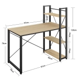 Bureau informatique avec quatre étagères et pieds réglables, chêne Sonoma