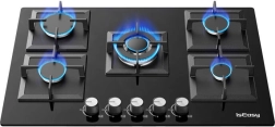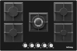 La cuisinière à gaz en verre IsEasy apporte un design moderne et une haute efficacité à votre cuisine. Elle est équipée de cinq brûleurs de puissances différentes : 1× 1 kW, 2× 1,75 kW, 1× 2,7 kW et 1× 3,3 kW, ce qui permet de cuisiner plusieurs plats en même temps.