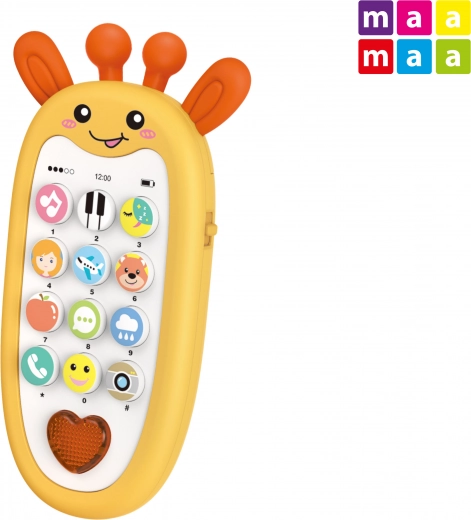 Ce adorable téléphone girafe deviendra le compagnon préféré de votre enfant. En appuyant sur les boutons, il émet des effets lumineux colorés et des sons agréables, qui éveillent la curiosité et enseignent la relation cause–effet. Grâce à son format compact de 13,5 cm, il tient et se manie facilement par les enfants.