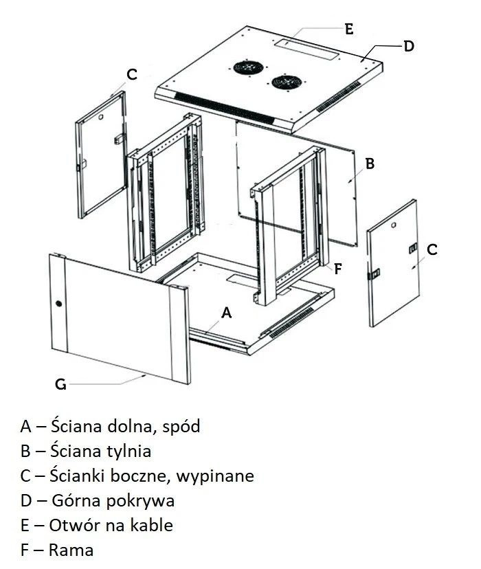 L’installation et la maintenance sont accélérées grâce aux montants clairement gradués 4U et aux panneaux latéraux facilement amovibles avec serrures incluses. Le panneau supérieur est prêt pour l’installation de deux ventilateurs pour un refroidissement efficace et comporte un passe‑câbles pour un cheminement propre.
