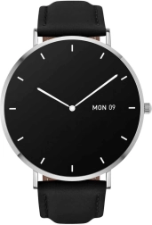 Un boîtier ultra‑fin et léger pour un port agréable. La certification IP67 protège sous la pluie et contre la poussière, et le bracelet en cuir se remplace facilement.