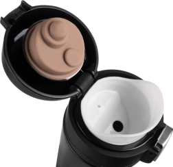 L’ouverture facile par simple pression offre un accès rapide à la boisson, tandis que l’embout hygiénique et confortable rend la dégustation agréable en déplacement. Le mug est fabriqué à partir de matériaux sûrs (acier inoxydable et PP), facile à nettoyer et, grâce à ses dimensions universelles, s’adapte à la plupart des porte-gobelets de voiture.