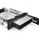 Baie amovible pour HDD 3,5" SATA/SAS dans une baie 5,25" pour un échange rapide sans outils. Technologie NSS pour jusqu’à 50 000 remplacements, verrou, refroidissement passif en aluminium et fonctionnement silencieux.