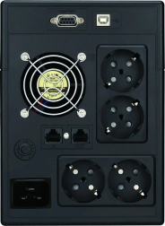 Onduleur de secours fiable pour les foyers et les petits bureaux avec topologie line-interactive, puissance de 3000 VA et écran LCD clair. Il offre une régulation automatique de la tension (AVR), la possibilité de démarrage à froid, 4× prises Schuko et une communication via USB incluant la protection de la ligne de données RJ11/RJ45.