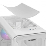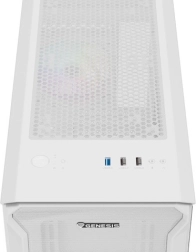 Sur le panneau supérieur, vous trouverez l’essentiel : 1× USB 3.0, 2× USB 2.0 et 2× prises jack HD Audio. La maille fine et les filtres anti‑poussière aident à maintenir l’intérieur propre, assurant fiabilité à long terme et esthétique soignée.