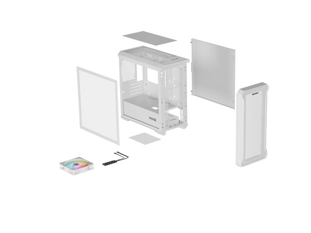 Le panneau avant perforé et le ventilateur OXAL ARGB 120 mm préinstallé assurent une circulation d’air efficace et un éclairage attractif pour votre configuration.