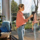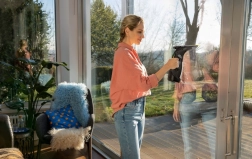 La combinaison d’une bouteille avec pulvérisateur et d’un tampon en microfibre garantit un nettoyage efficace et, associée à l’alimentation par batterie, permet d’obtenir des vitres parfaitement propres.