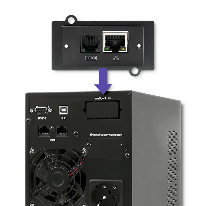 - Possibilité de connecter une carte ou un adaptateur SNMP pour la gestion réseau.