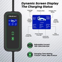 Profitez d’une flexibilité maximale avec le chargeur mobile Qoltec, compatible avec la plupart des véhicules électriques vendus en Europe grâce à sa prise de type 2. Le chargeur est équipé d’une fonction de régulation du courant de charge avec des options 16 A, 20 A, 24 A et 32 A, ce qui permet d’adapter la charge à vos besoins spécifiques.
