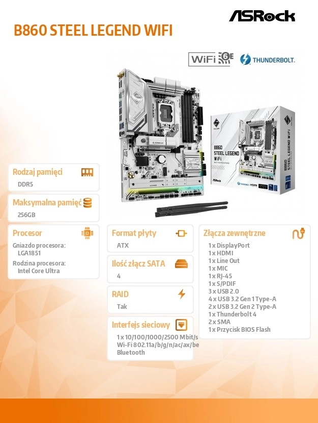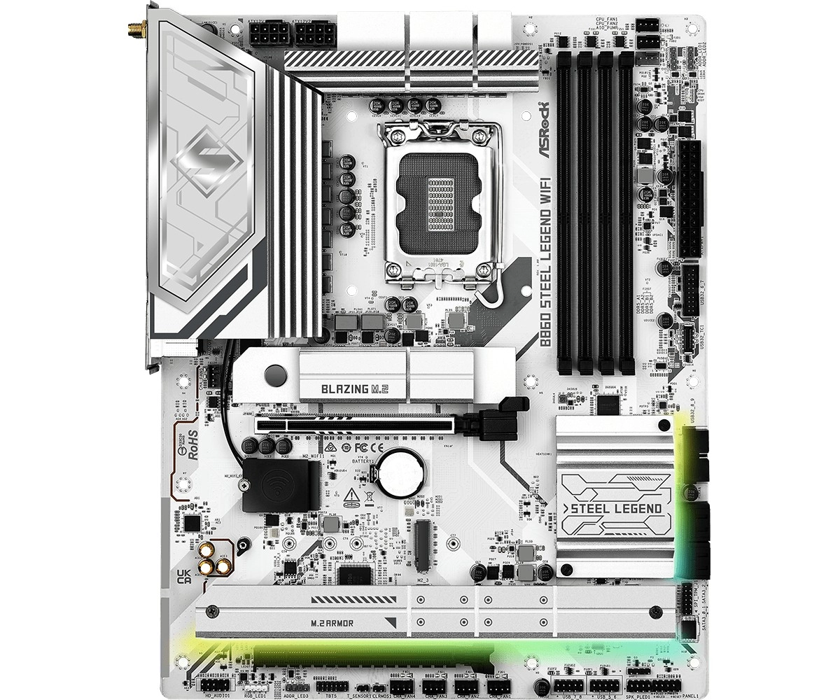 B860 Steel Legend WiFi est conçue pour allier solidité et esthétique. Cette carte mère s’adresse aussi bien aux utilisateurs ordinaires qu’aux passionnés. Elle offre des performances stables et fiables grâce à des matériaux et des composants de haute qualité.