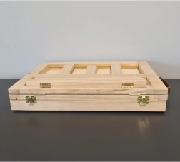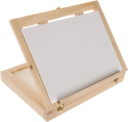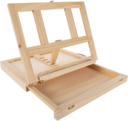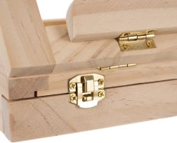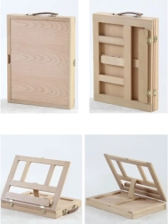 La valisette en bois est équipée d’un tiroir et d’un chevalet, garantissant un transport facile et une organisation optimale du matériel artistique.