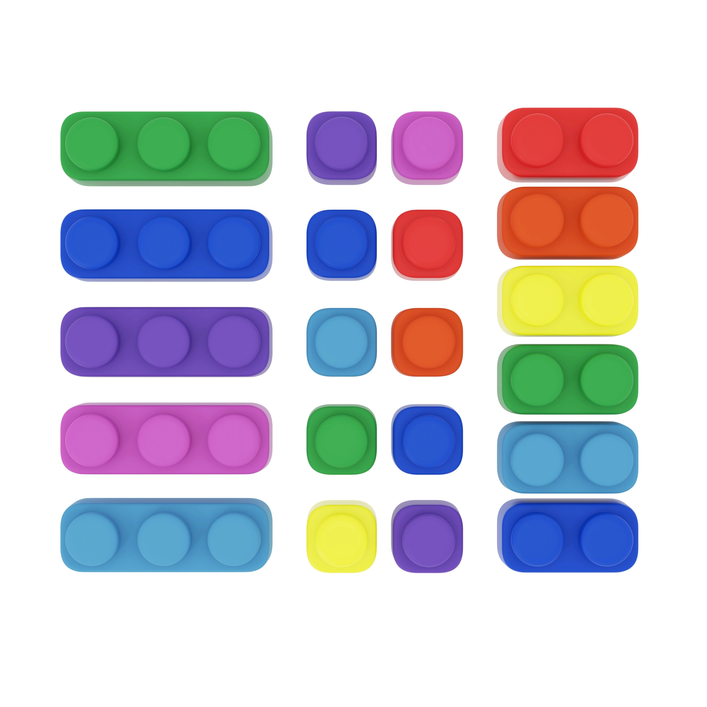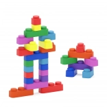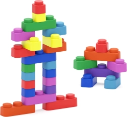 Le coffret contient une combinaison de blocs simples, doubles et triples, permettant de construire des formes simples comme plus complexes. Le matériau est souple et sûr, adapté aux plus jeunes enfants, pour la maison comme pour la maternelle.