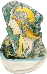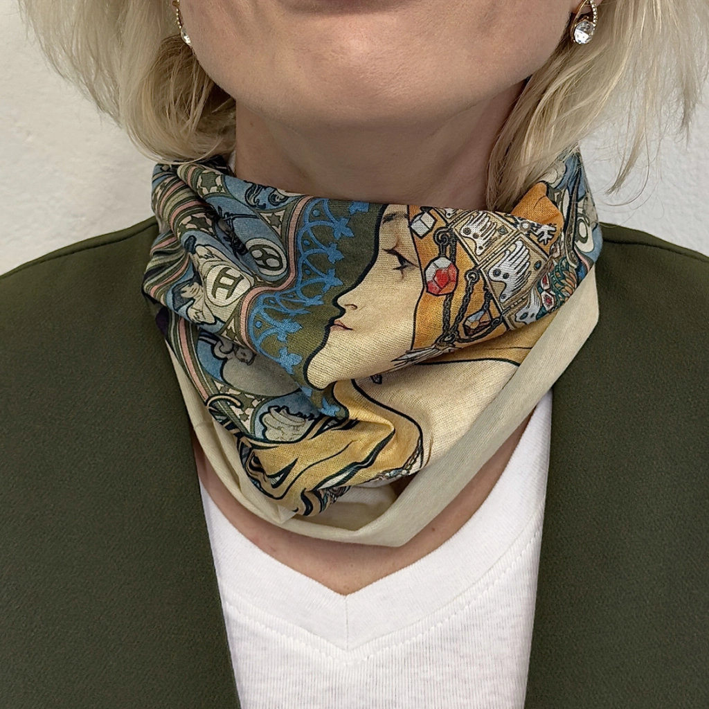 Découvrez une bandana élégante inspirée de l’esthétique Art nouveau iconique d’Alfons Mucha. Le motif Zodiaque apporte à votre tenue un caractère artistique et intemporel, tandis que le polyester léger assure un port agréable et un entretien facile.