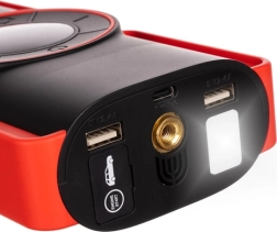 - 6‑en‑1 : démarreur, chargeur/redresseur, powerbank, compresseur, lampe LED, charge USB