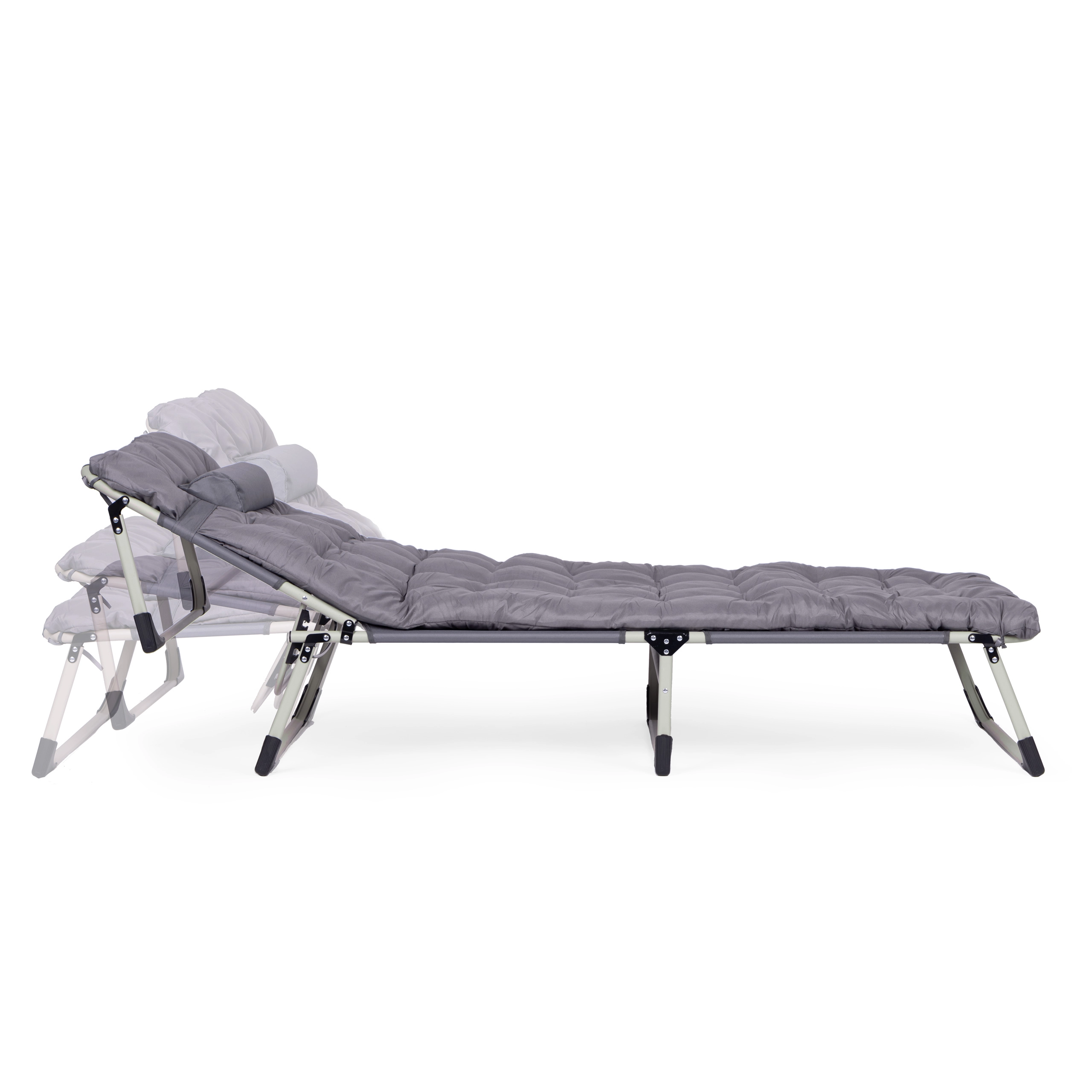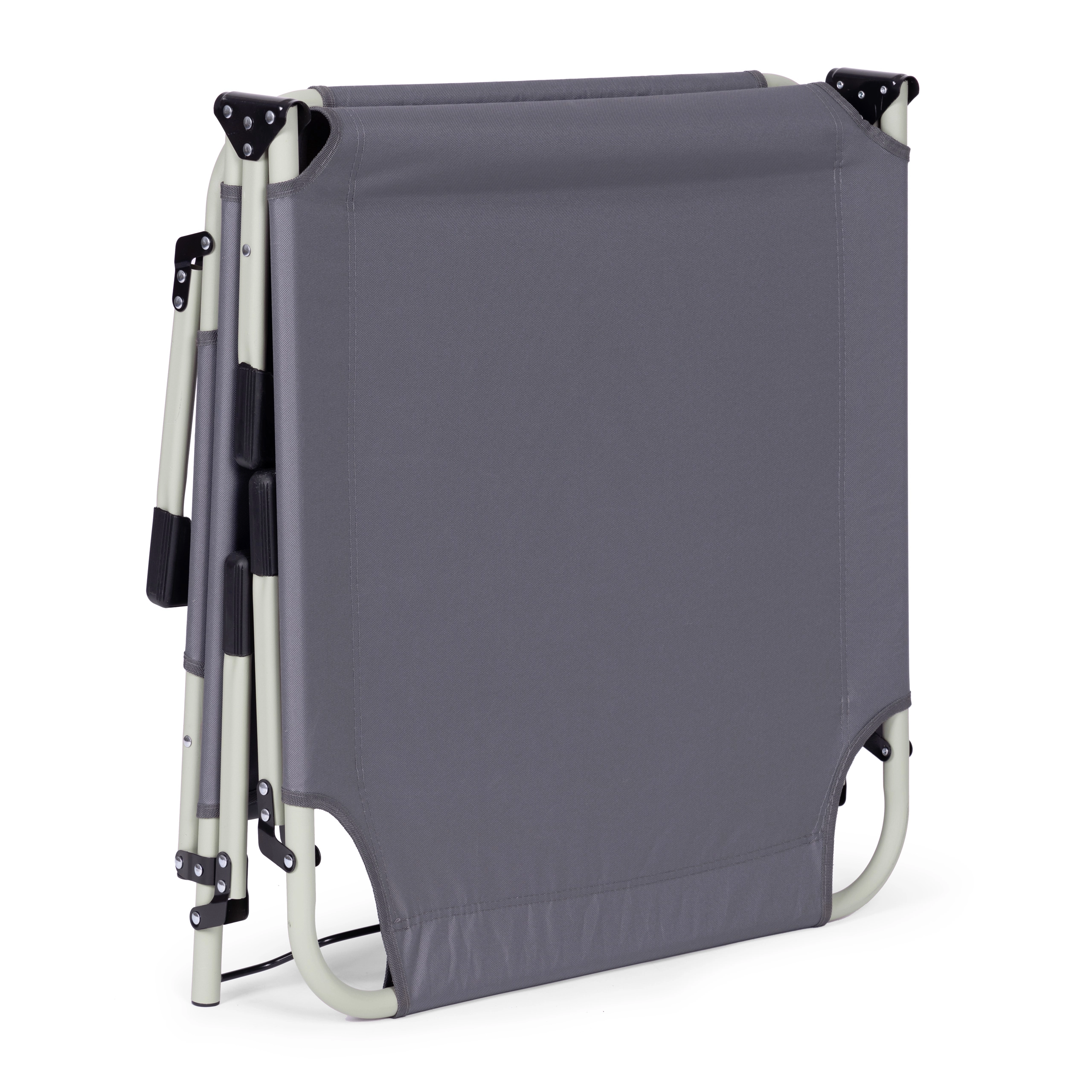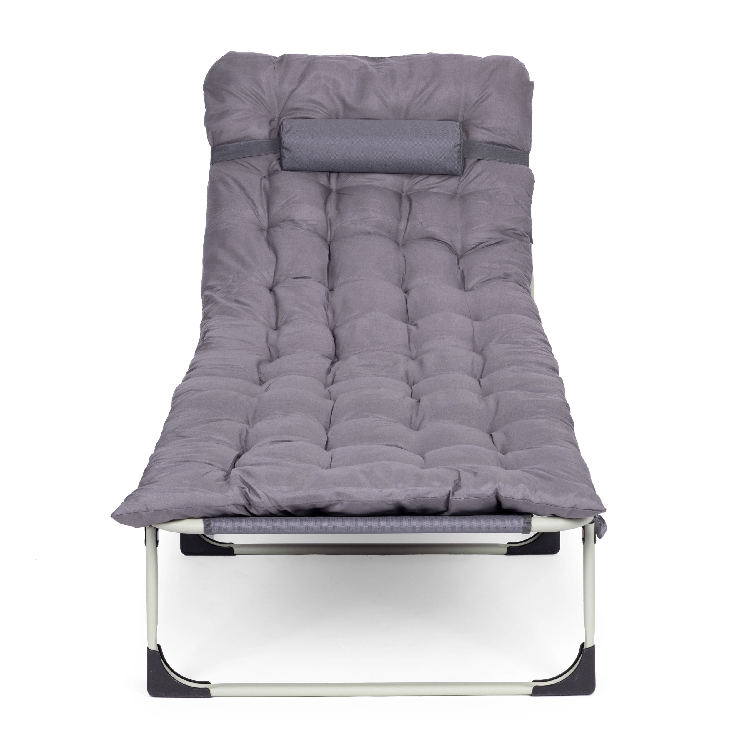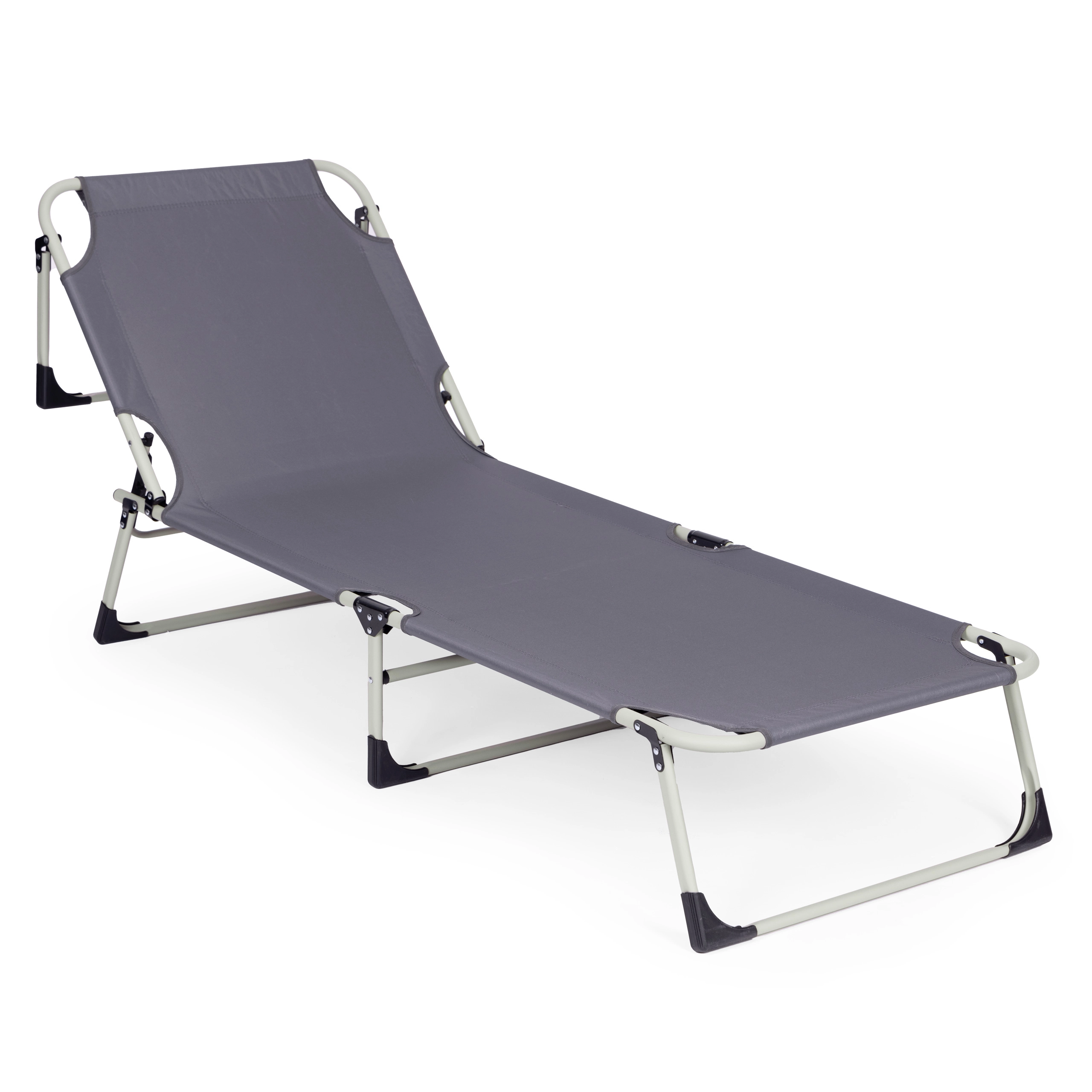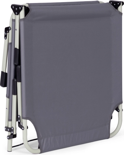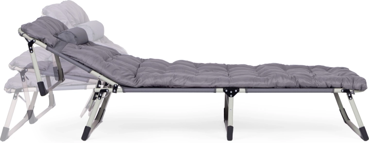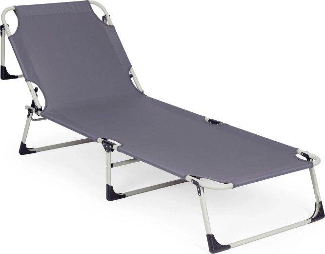 Pratique et polyvalente, cette chaise longue réglable de couleur grise est conçue pour la détente au bord de l’eau, au jardin ou en déplacement. Le matelas épais et le petit coussin amovible augmentent le confort en position assise ou allongée, tandis que le dossier réglable sur 4 angles permet de passer rapidement d’une position relax à l’allongé complet.