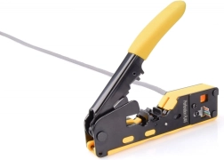 Outil professionnel pour les installations réseau, combinant dans un seul corps le sertissage, la coupe et le dénudage. La pince à sertir DIGITUS est compatible avec les connecteurs traversants RJ45 (8P8C) des catégories 5e et 6, y compris les versions blindées et non blindées, et prend également en charge RJ12 (6P6C) et RJ11 (6P4C). Le résultat : un travail plus rapide, moins d’erreurs et une fiabilité maximale des liaisons.