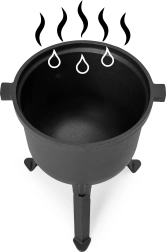 Le chaudron est fabriqué en fonte robuste et répond à toutes les normes de sécurité alimentaire.